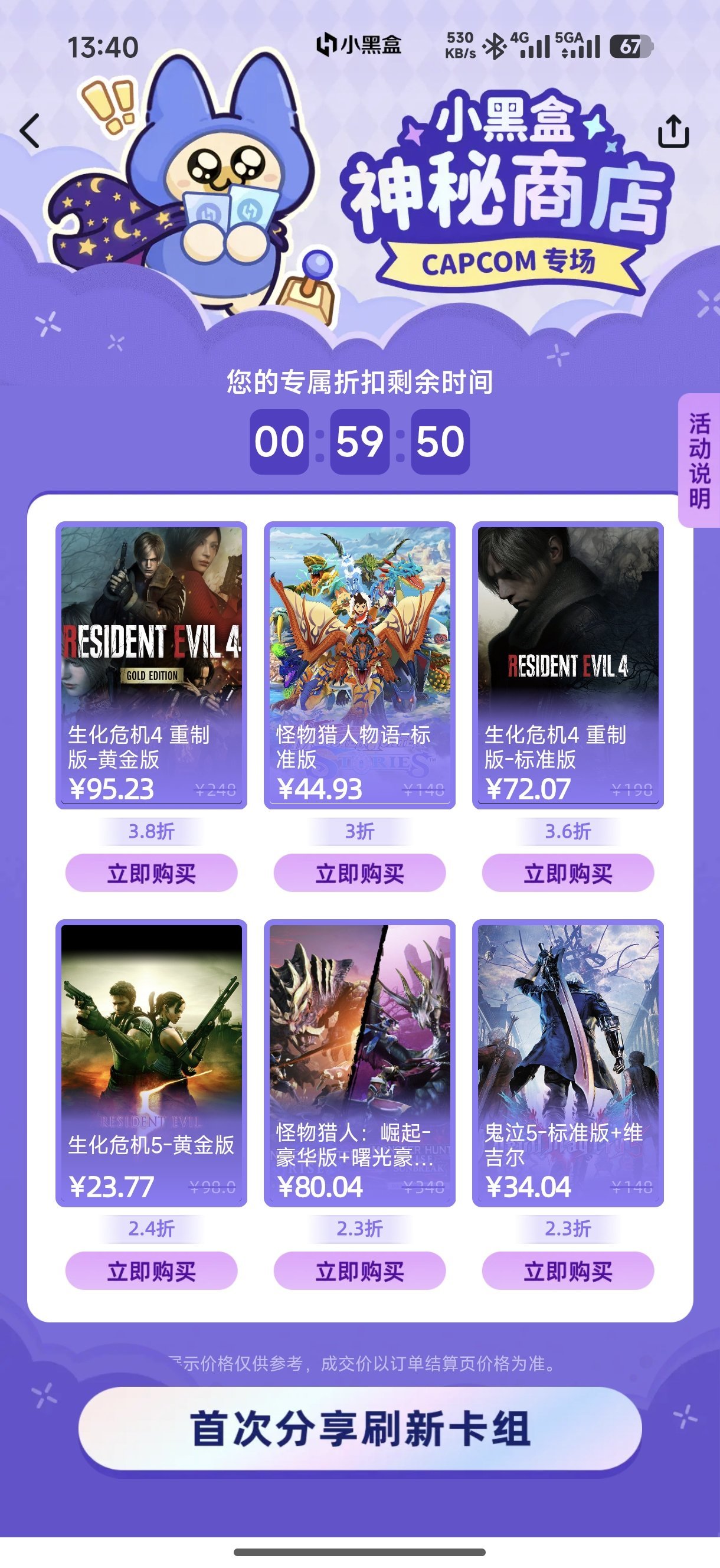 每个人可以有两次机会,折扣刷新出来后,限时1小时。