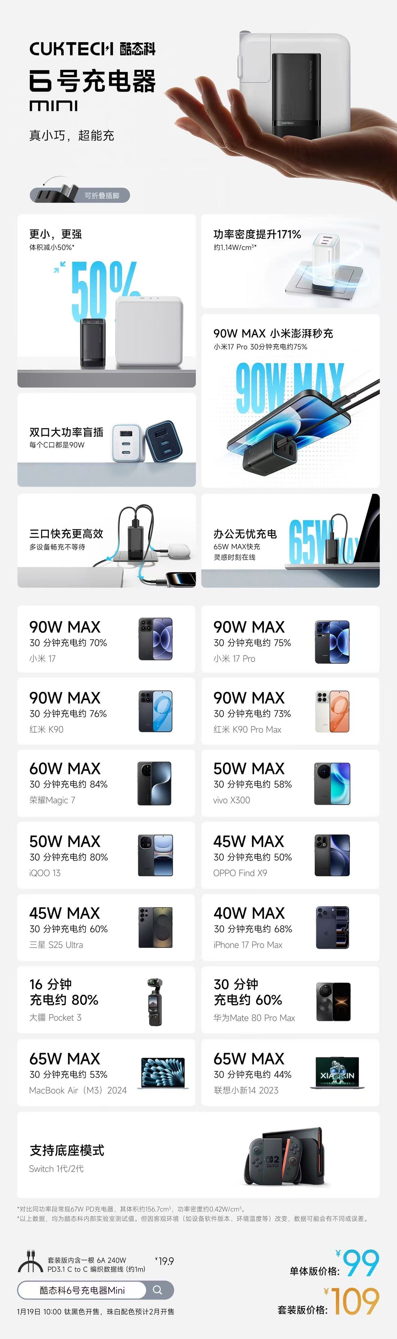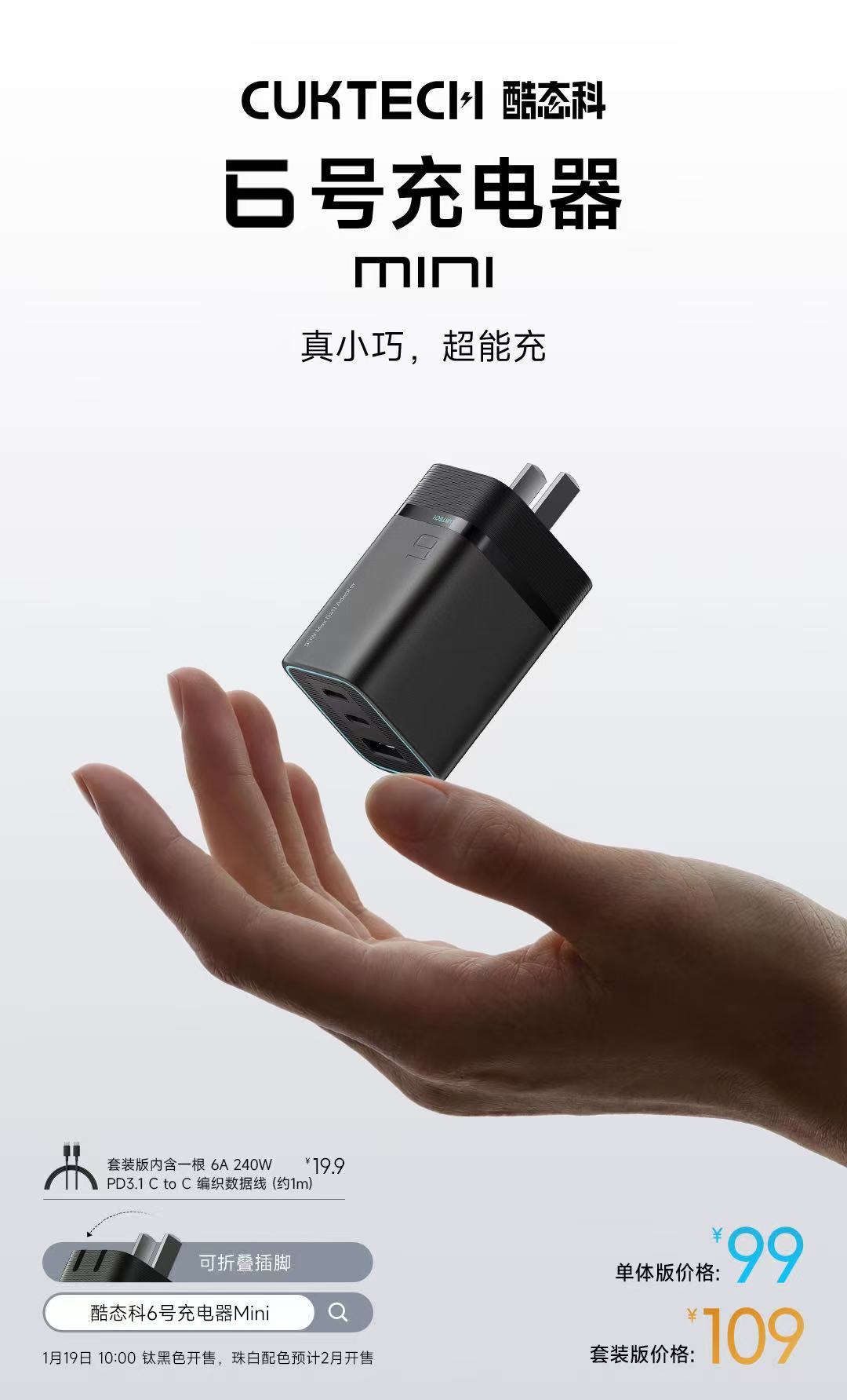 今日,酷态科正式发布 6号Mini 充电器。