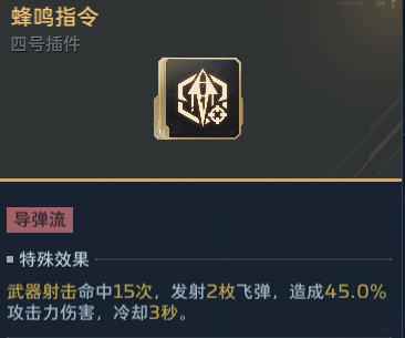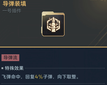 核心插件是三号位【导弹填装】,这是最最核心的插件,飞弹伤害翻倍,这玩意没有任何替代品。