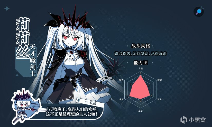 銀蔥之森的神祕美少女,是一位略懂些魔法技藝的劍士,自稱要打敗魔王贏得衆人的歡呼——不過目前的當務之急是搶購打折麪包。