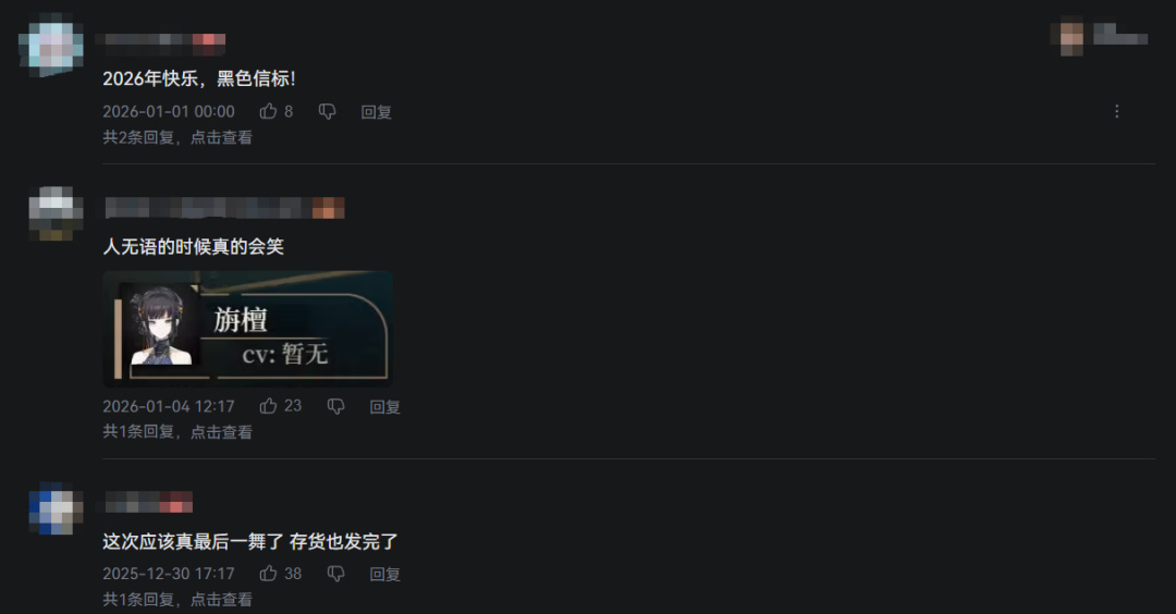今年1月4日,《黑色信标》开放了免费5星新角色「旃檀」的领取,但评论区有玩家发现,这一角色的制作稍显粗糙,甚至配音也是处在空缺的状态。