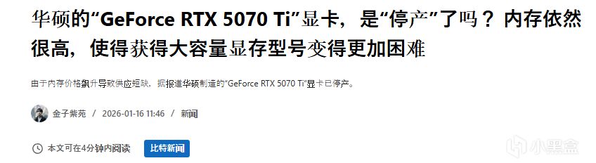 尽管华硕否认停产,但包括华硕在内的多家厂商的RTX 5070 Ti及RTX 5060 Ti 16GB产品目前在市场上已较难购得。内存价格持续高位运行,使大容量显卡供应面临更大压力,短期内入手难度预计仍将较高。