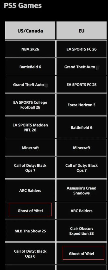 最近,PlayStation官方博客公布的2025全年PS5下载榜:美国/加拿大:第9位。前8:1.NBA 2K26、2.Battlefield 6、...7.Call of Duty: Black Ops 7、8.ARC Raiders。欧洲:第11位,未进前10。前10有EA SPORTS FC 26、B6、COD BO7、ARC Raiders等。
