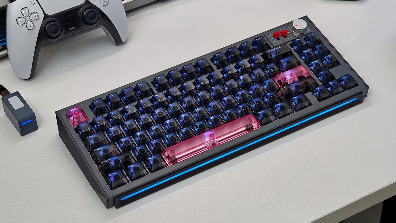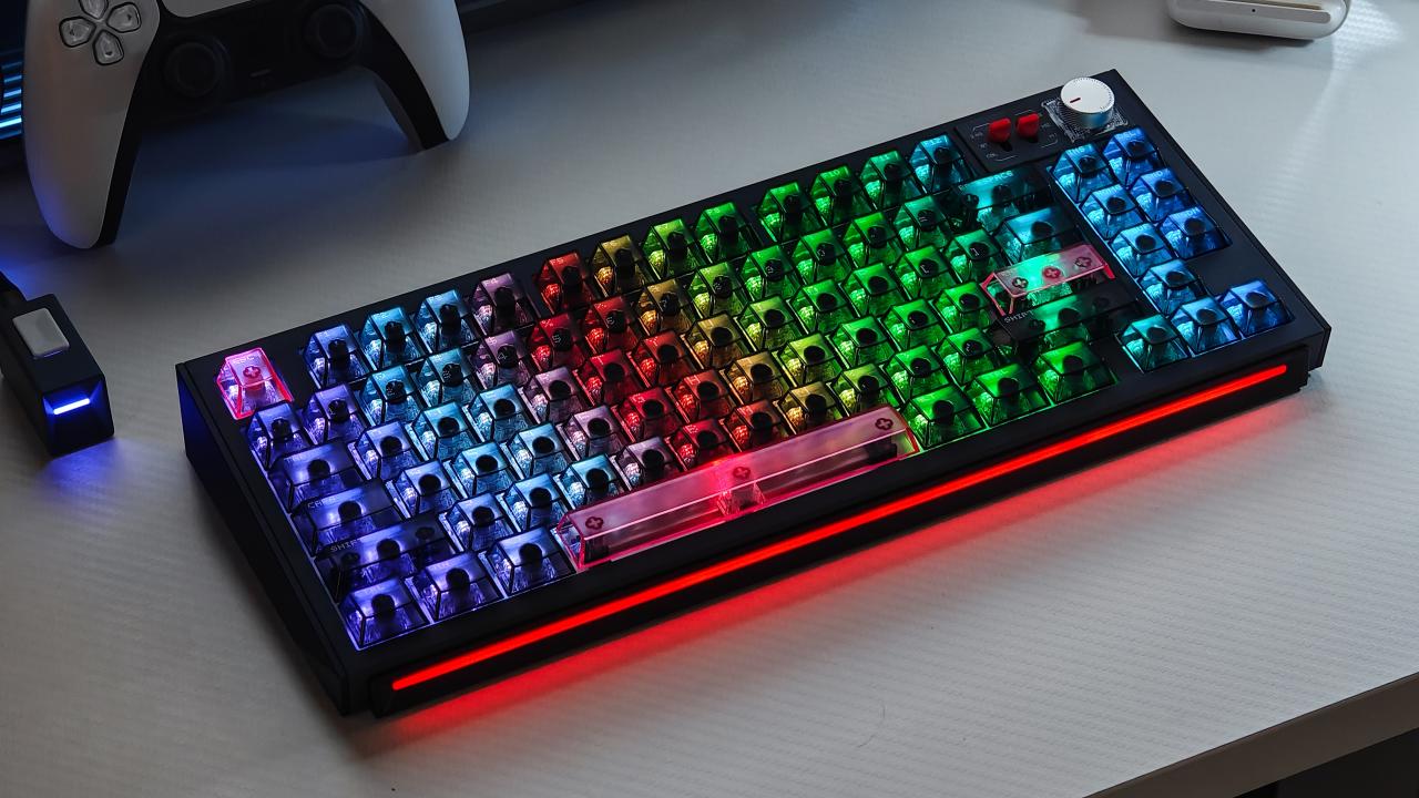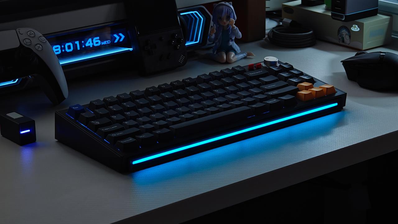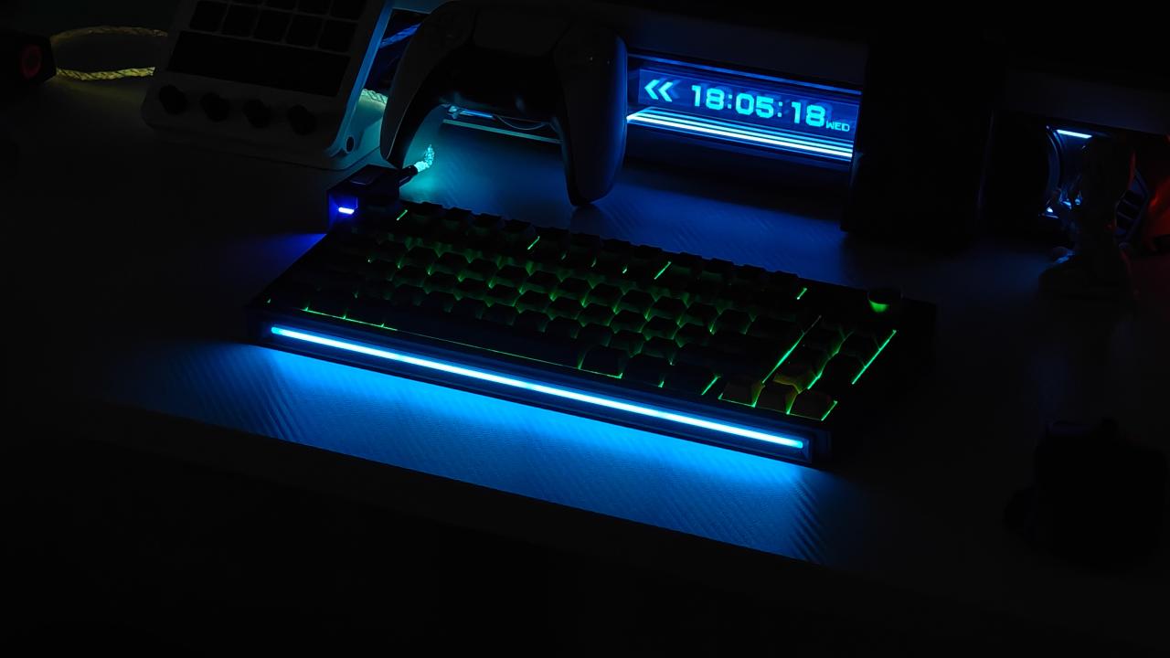 底部的燈帶就是點睛之筆了,給這把看起來有點復古風格的鍵盤增加了一模科技感,特別是在夜晚關燈下使用,cool!