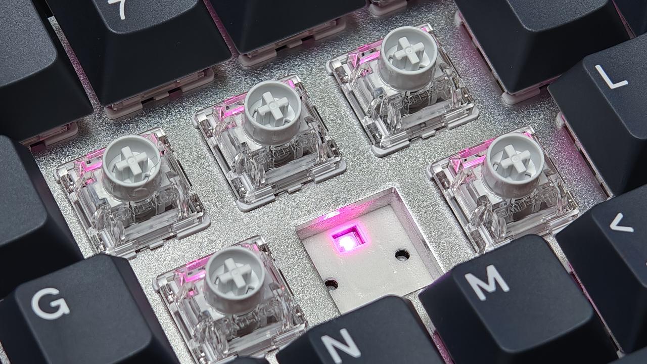而且沒有爲了手感上的軟彈採用PC定位板,依舊是鋁合金定位,保證了遊戲鍵盤需要的硬硬的手感。