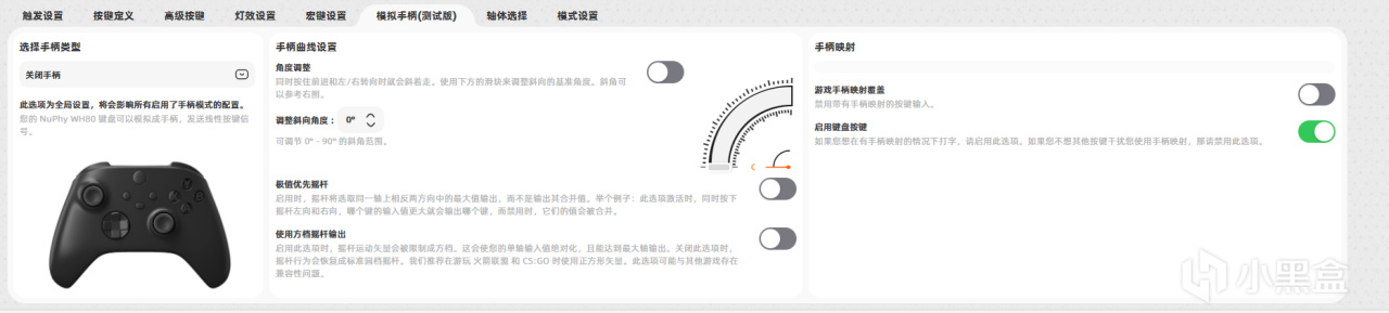 而且新版驅動還支持讓鍵盤模擬手柄功能,可以實現鍵盤玩賽車遊戲也有線性油門!