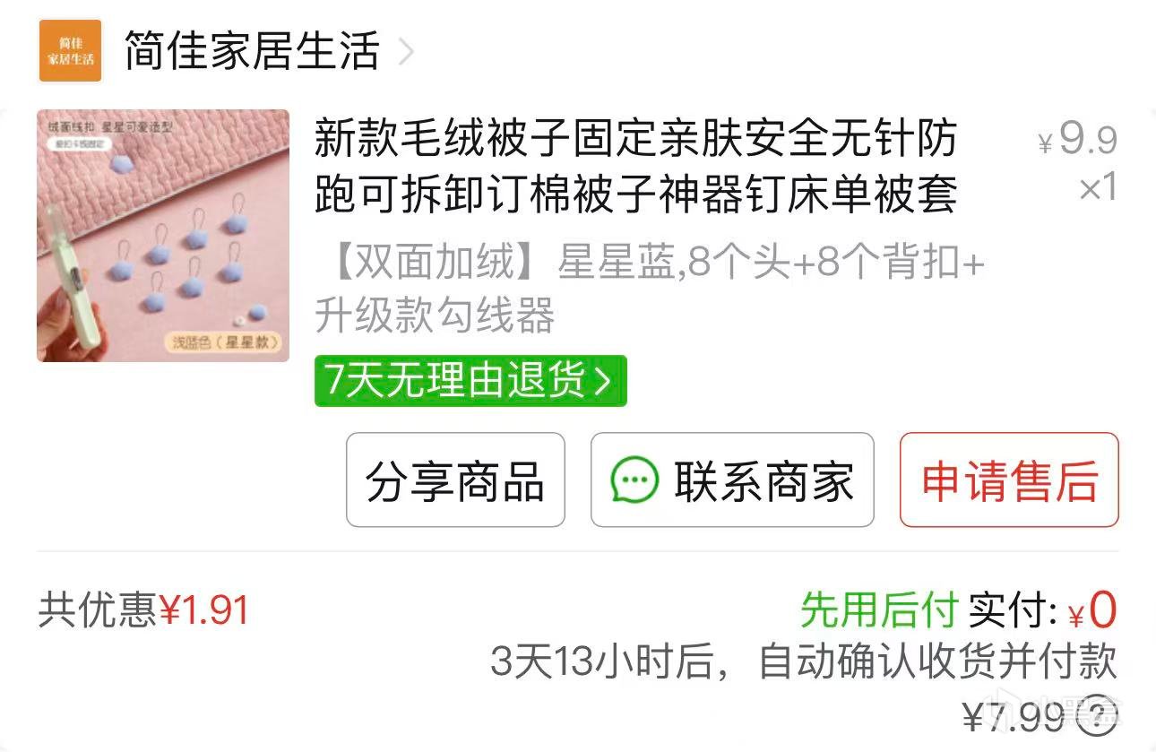 我的被子总是在被套里乱跑弄成一堆,所以买了固定被子的,不喜欢带针的,买的这个穿线的。
