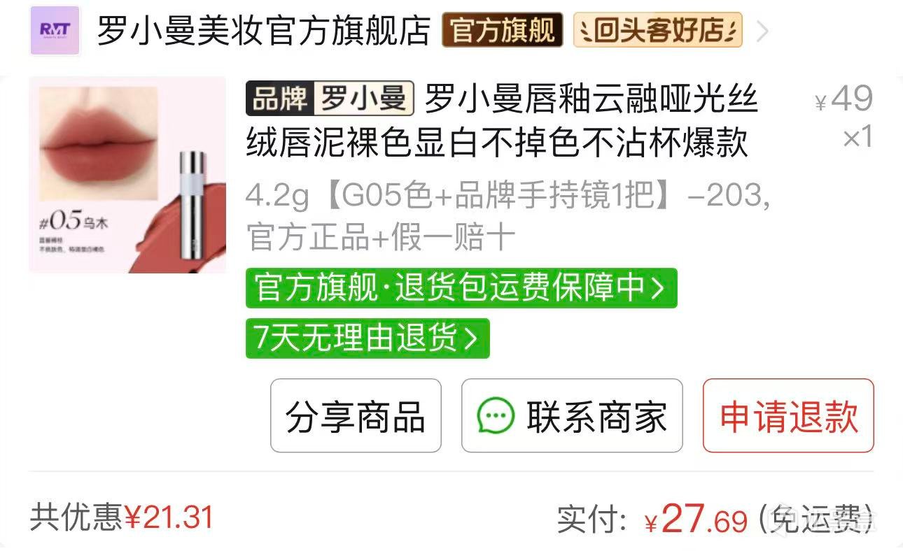 下面买的这个兄弟们可以跳过,给女粉看的,因为我之前口红总掉色,被同事安利了一款,虽然没听过这个牌子,但是同事用了好几根了,而且很便宜,就买来试试,挺好用的,基本不掉色。
