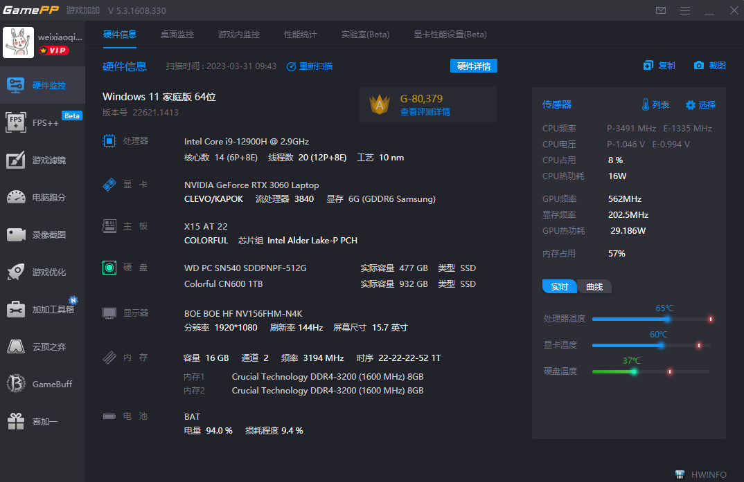一款专为游戏玩家设计的辅助工具,可以实时显示FPS等信息,性能监控,电脑配置信息等等
