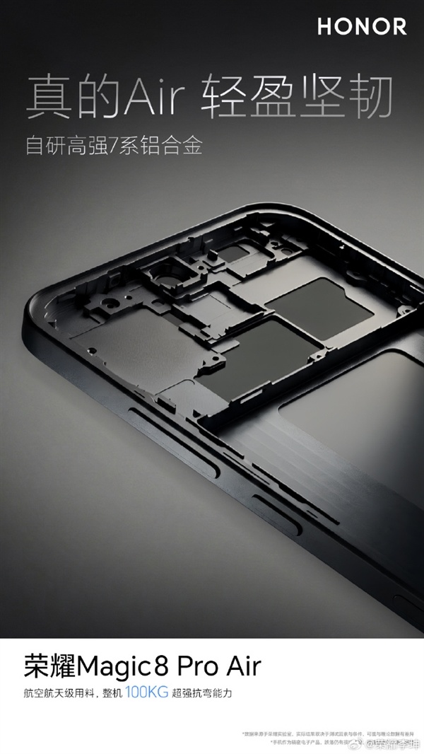 今日,榮耀旗艦手機產品經理李坤發文介紹榮耀Magic8 Pro Air部分配置,他表示,在榮耀看來,如果只有輕薄,卻沒有完整體驗,那不叫Air。