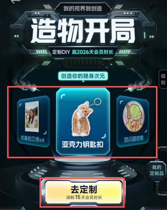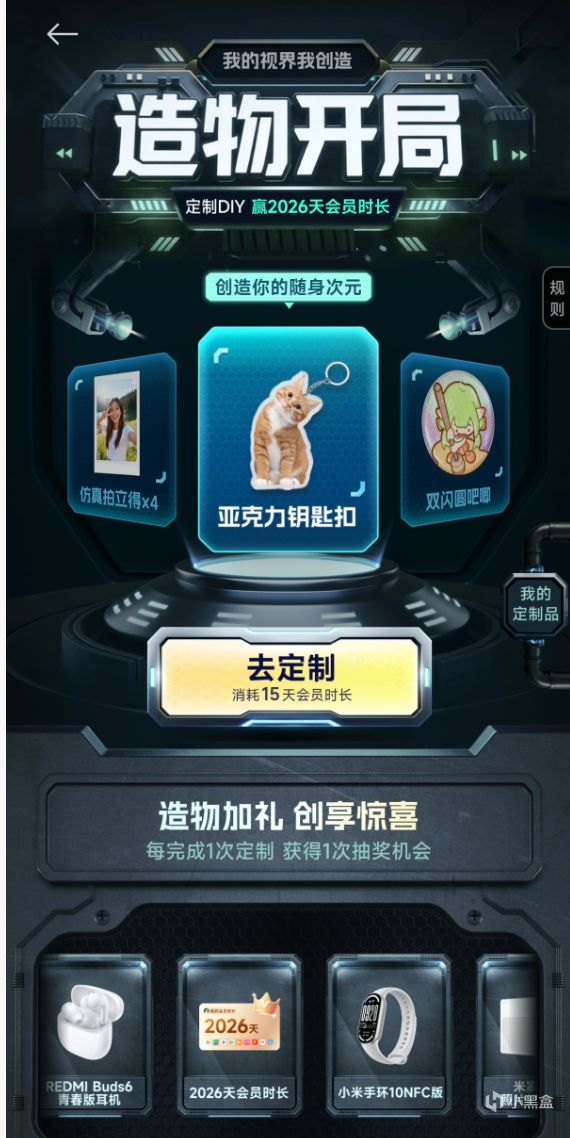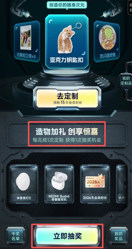小米钱包今日新加的活动《造物开局》可以定制亚克力钥匙扣、双闪圆吧唧和仿真拍立得照片,活动时间为1月16日—1月22日,需注意每次定制花费15天会员时长进行兑换。