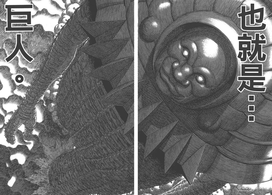 (1)众所周知,老贼特别喜欢三浦健太郎的剑风传奇,也经常会借鉴。虽然三浦拥有同名作《巨人战争》,但是老贼并未有借鉴该作的痕迹,不过里面的巨人也会释放火焰般的电浆