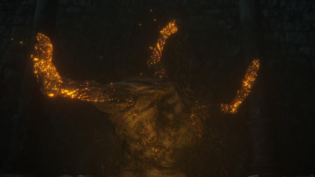 火焰巨人一族在多方势力的猛烈攻势下被斩杀殆尽,仅剩最后一只火焰巨人,玛莉卡深知即使巨人们灭族,火焰大锅的火焰也依然永恒无尽,便直接在仅存的火焰巨人身上刻下了烙印诅咒。