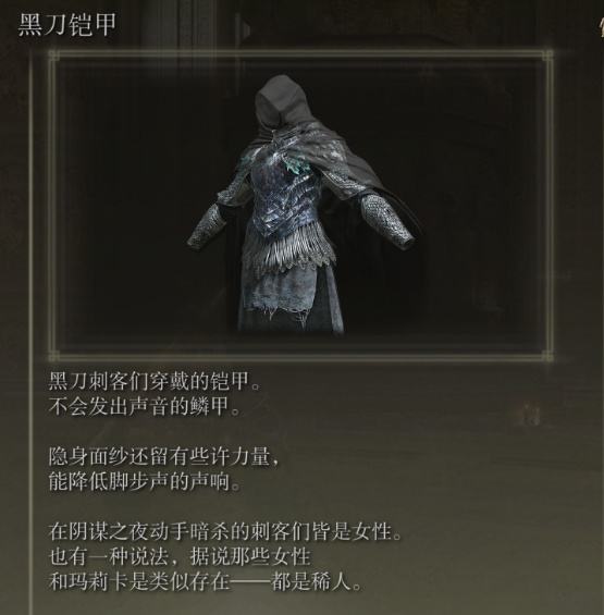 (1)黑刀之夜的刺客与玛莉卡一样同样是稀人,玛莉卡在被选为神人之后就成为了稀人一族的领袖,利用无上意志对自己的看好,和巩固黄金树的理由去夺取命定之死,掌握在自己手中,是以便谋划推翻黄金树“生命回归”的病态信仰。