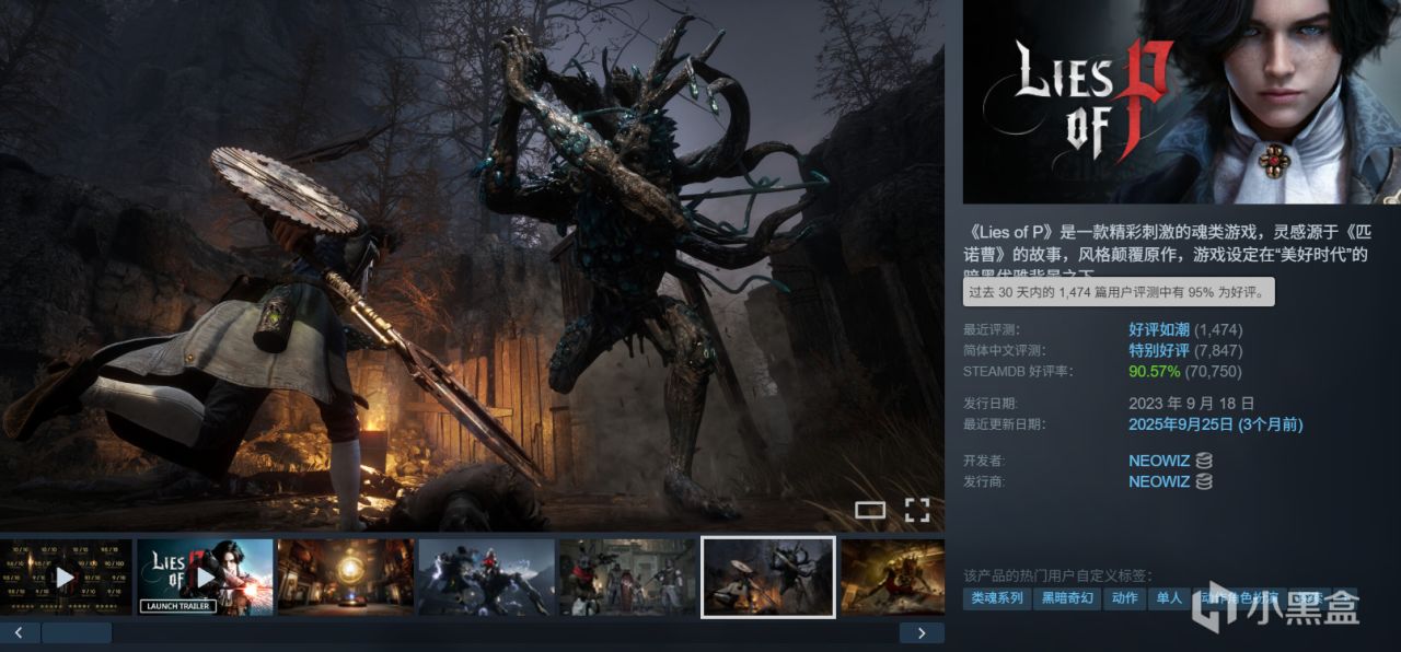 《Lies of P》是一款精彩刺激的魂类游戏,灵感源于《匹诺曹》的故事,风格颠覆原作,游戏设定在“美好时代”的暗黑优雅背景之下。