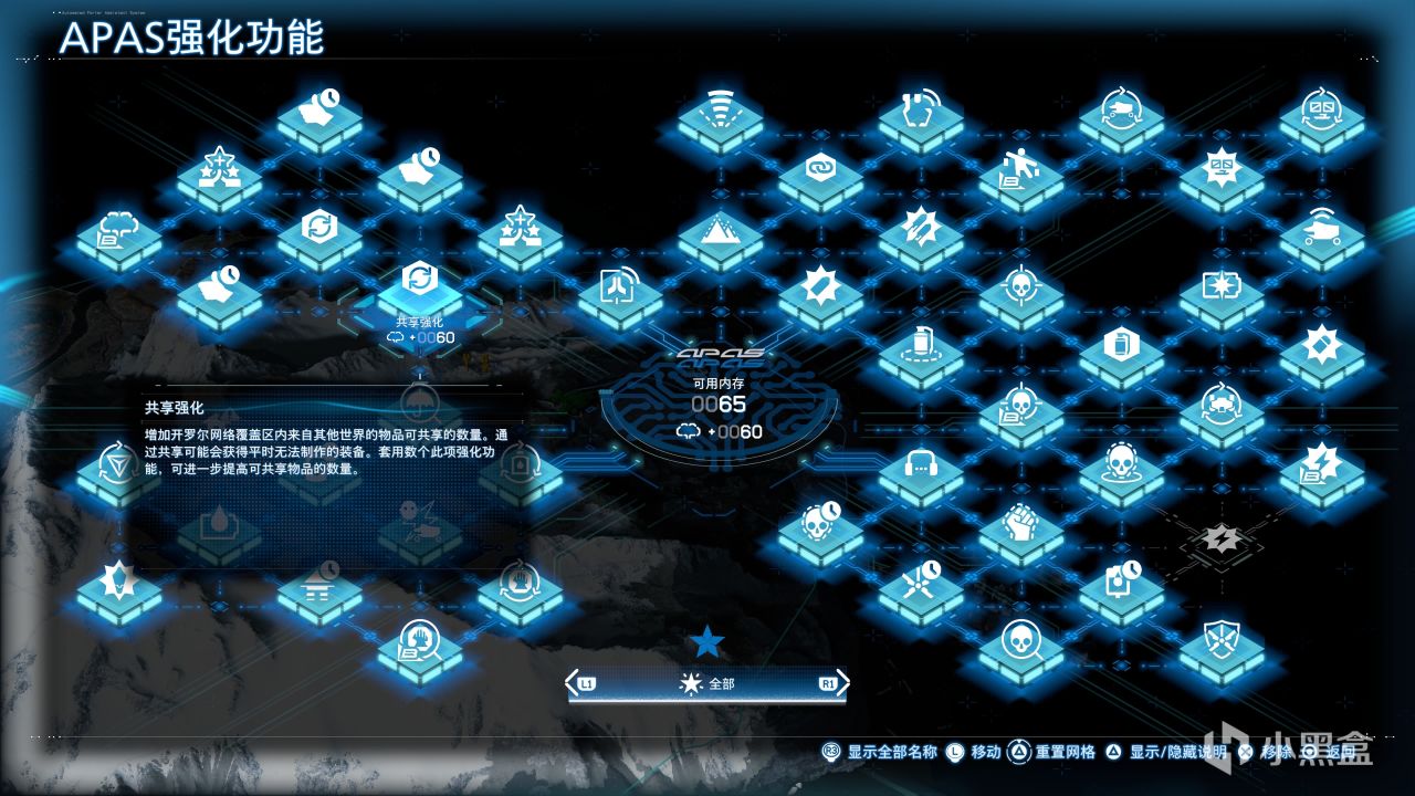 在遊戲推進到澳大利亞區域後,主角會解鎖APAS強化功能,也就是技能樹加點,可以強化主角在共享、建築、戰鬥、潛行等多個方面的能力。