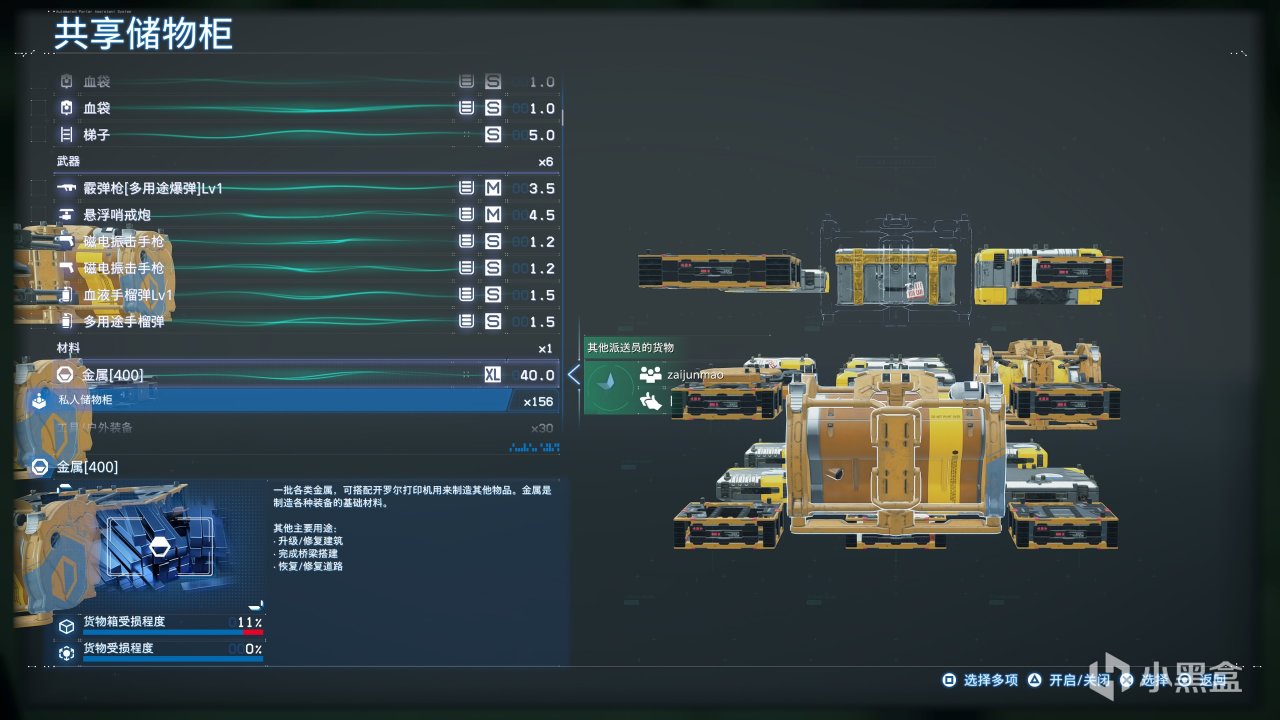 最常見的委託就是在各個遊戲據點中,會有支援圖標,要麼是需求武器、要麼是需求工具。而我們可以“取盒用盒”,在共享儲物櫃中取出別人捐贈的道具,然後再把這些道具捐贈給別人,可以零成本提升自己的服務精神等級,主打一個白嫖。而對於其他的暫時用不上的裝備道具,可以直接在設施終端裏回爐分解成材料。