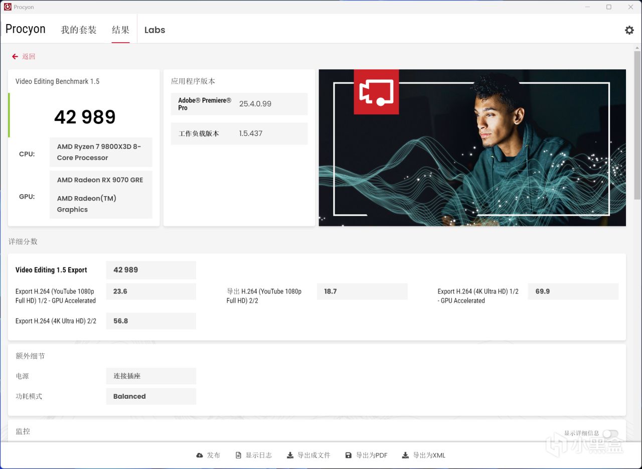 RX 9070 GRE在Procyon Video Editing Benchmark 1.5中总分为42989