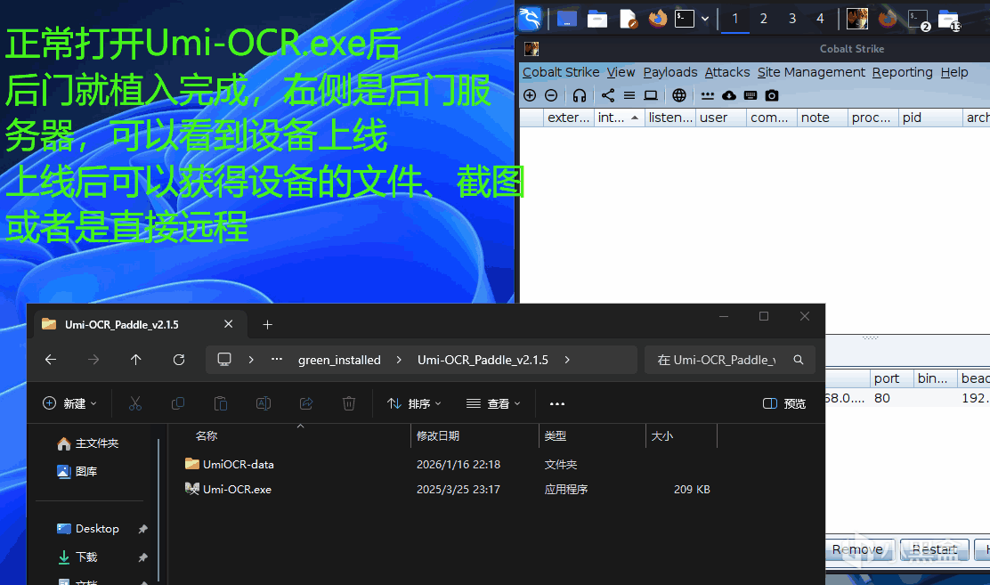 我們來看演示,運行一個知名軟件Umi-OCR(圖中右側爲後門服務器)