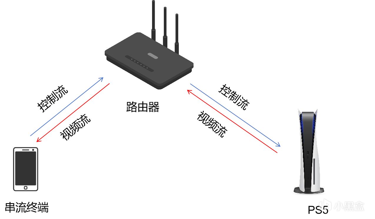 所谓串流,实际就是一种云计算,即串流终端只收集控制输入信息,然后通过网络传输给PS5,PS5进行计算和渲染后,生成音频画面,再通过网络传输给串流终端显示出来。串流终端就相当于是在播放视频,因此基本上没有什么性能要求,把我妈的老年手机拿过来,也能实现流畅地串流游戏。