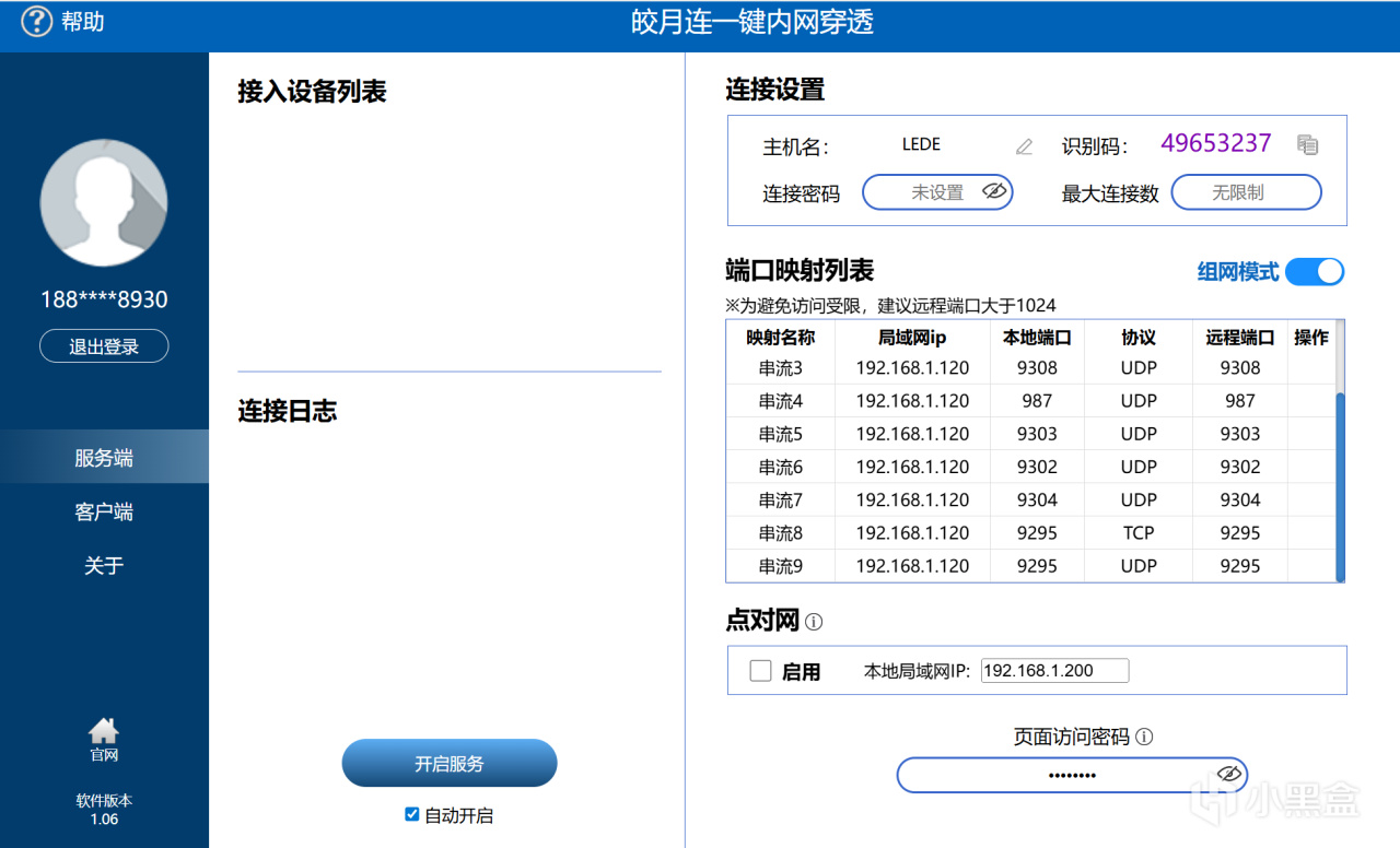 最后,勾选自动开启后,点击启动服务。当连接日志出现下列提示时,表示设置成功。