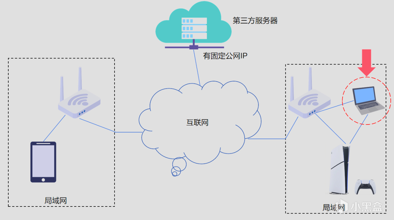 通过在PS5所在的局域网内一台智能设备来实现端口数据转发,解决PS5不能安装客户端软件的问题