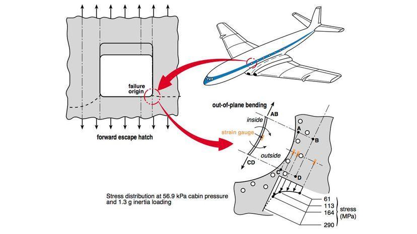 这一结论的得出,源于民航史上一次刻骨铭心的事故。上世纪 50 年代,英国德哈维兰公司推出的彗星号客机,是世界上首款投入商业运营的喷气式客机,它凭借更快的速度、更舒适的体验一度引领民航潮流,却因一个致命的设计缺陷接连发生空中解体事故。调查人员通过水下模拟实验发现,彗星号客机采用的方形窗户,其直角处的应力集中现象,正是事故的元凶:反复的高空飞行让方形窗的直角处产生金属疲劳裂纹,最终导致机身在高空失压解体。这场悲剧成为民航发展的重要转折点,也让航空界彻底确立了 “机身开口必须采用圆角设计” 的硬性标准,方形窗户从此退出民航客机的设计舞台。