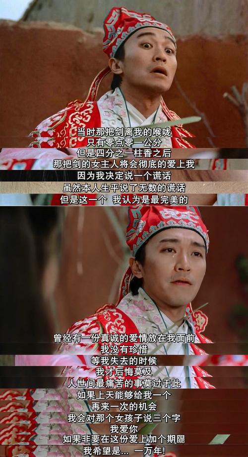 这句话是《大话西游》这部电影里我最喜欢的台词。它就像对着时空射了一箭,当白晶晶发现至尊宝心里的人不是她时,那支箭伤的是两个人,一个是现在的白晶晶,一个是曾经的至尊宝。