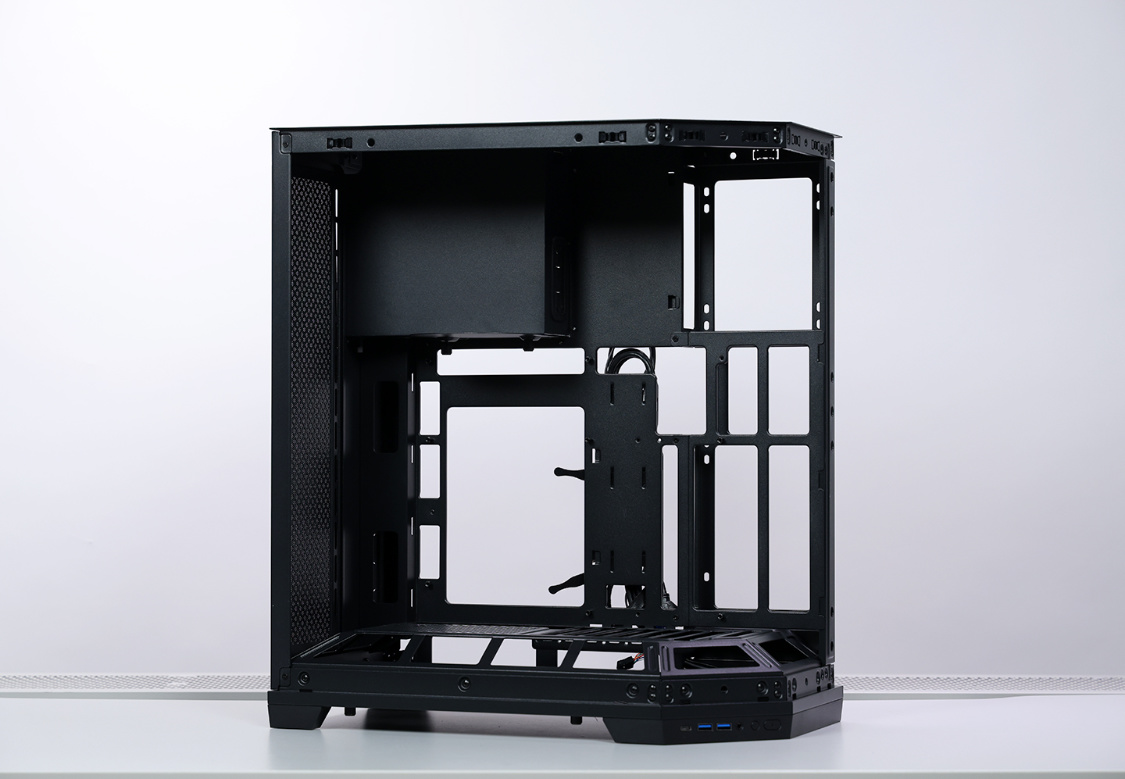 机箱最大可安装ATX规格主板并向下兼容,也支持背插ATX/MATX主板安装,显卡安装限长400mm(顶部安装水冷,显卡限长370mm),风冷安装限高178mm,尾部及主机板侧支持安装360规格冷排,最多可安装10把120mm规格散热风扇。主板仓一侧风扇位安装风扇,需先卸下框架。