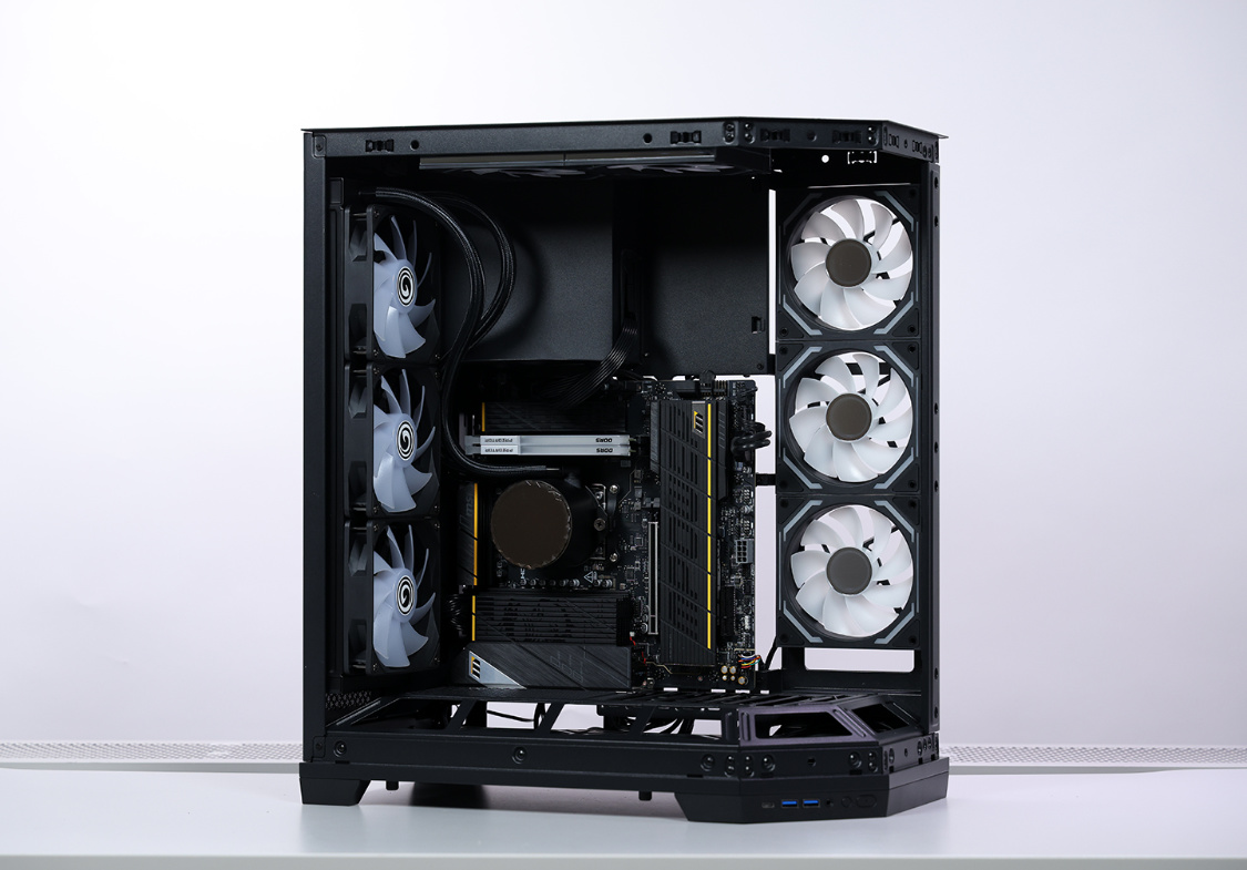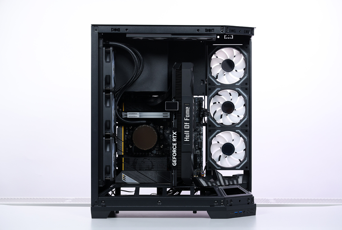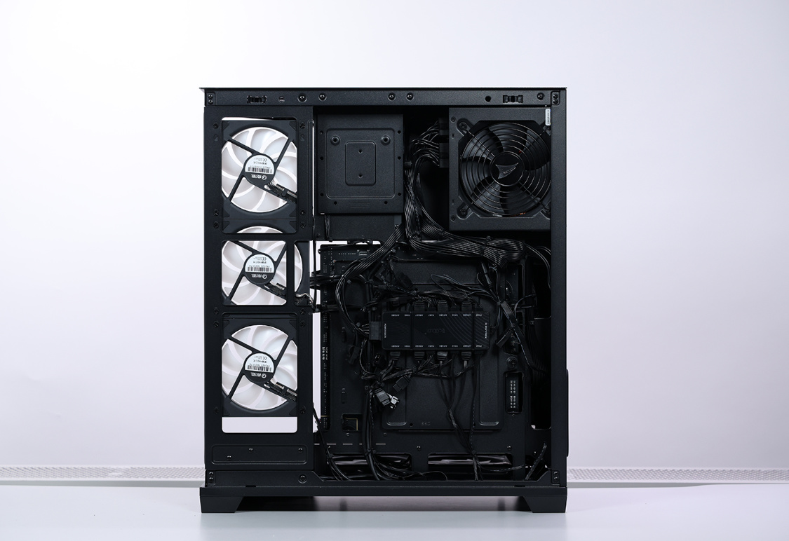 将电源与散热全部锁入机箱,空余的风扇位则全部安排上影驰梦境二代散热风扇。