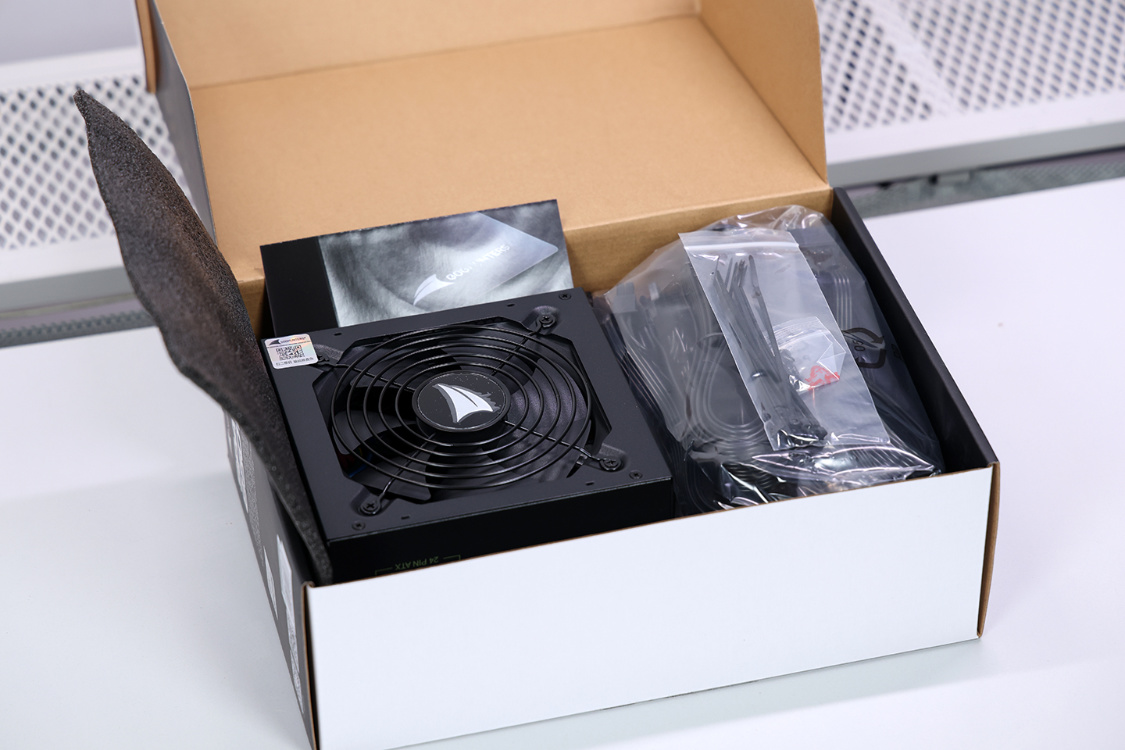 电源本体采用全黑配色,哑光处理,质感表现优秀。电源三围:150*140*86mm,内置1颗120mm规格散热风扇,风扇采用高转速马达,并配备了7片宽大的流线型扇叶,搭配上电源表面的网孔结构,在电源内部构成了一个独立高效的散热风道,保证电源在高负载的状态下,依旧可以稳定高效的运行。风扇支持智能启停与“智控0分贝”功能,可以让风扇根据电源内部温度或负载状态实时调整风扇转速,以降低电源产生的噪音。此外,风扇应用了关机延时停转设计,在电脑关机后,电源风扇依旧会保持一段时间的运行,带走剩余热量,延长电源使用寿命。