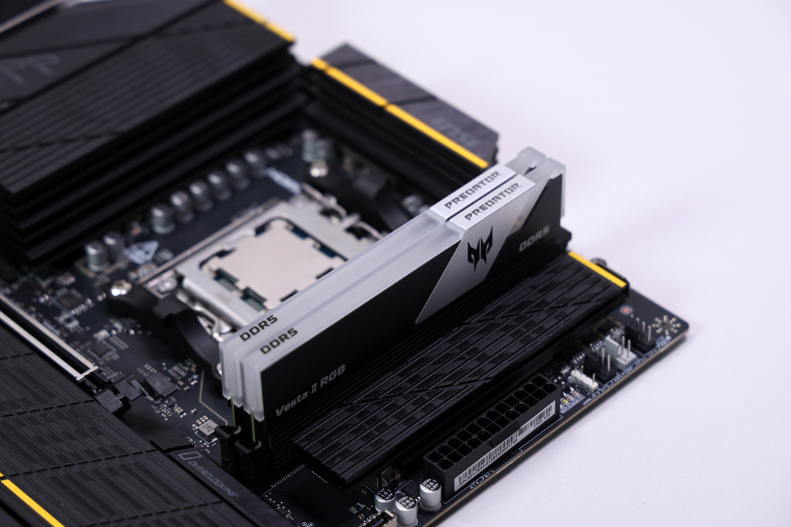 宏碁掠夺者Vesta II 炫光星舰 D5-6000MHz 16G*2 C28 内存,棱角分明的造型搭配上加厚加高金属马甲和质地均匀透光材料灯效区域,整套内存的颜值在线。6000MHz C28的超低时序,则能最大程度发挥D5内存的效能。