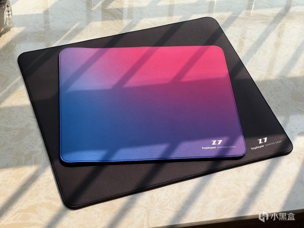打开抽出垫子,这次的首席玩家XY1有两个配色,分别是粉紫渐变和纯黑,本着囤货的初心,我两种颜色各入了一张,一张大号一张中号。
