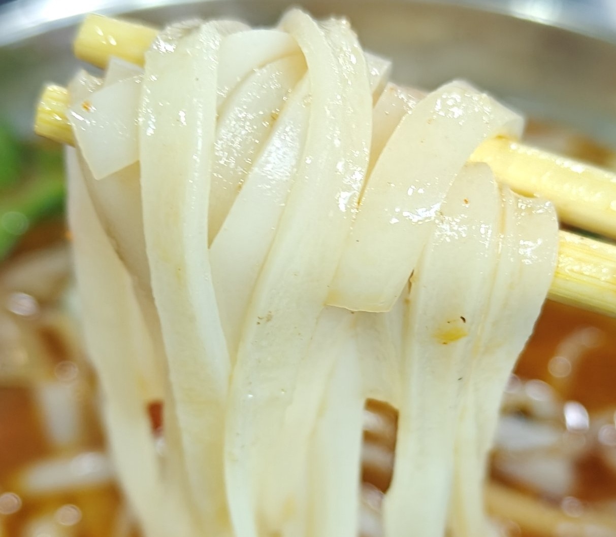 粉相當入味,口感順滑帶一點彈糯,沒有很薄,有一定韌勁。一碗的分量是真挺多的,這大不鏽鋼碗比臉還大,喫着很滿足。