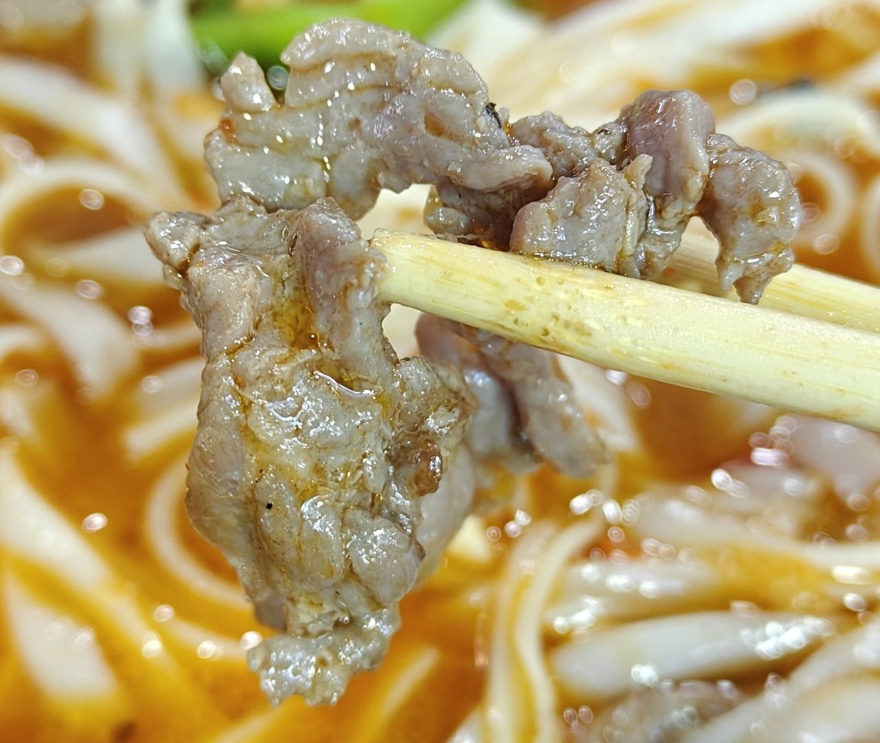 牛肉是一小片小片的,有醃製過,挺嫩的但肉香味沒那麼強了,分量也不少,粉喫完了還能從碗裏撈一撈剩下的牛肉。