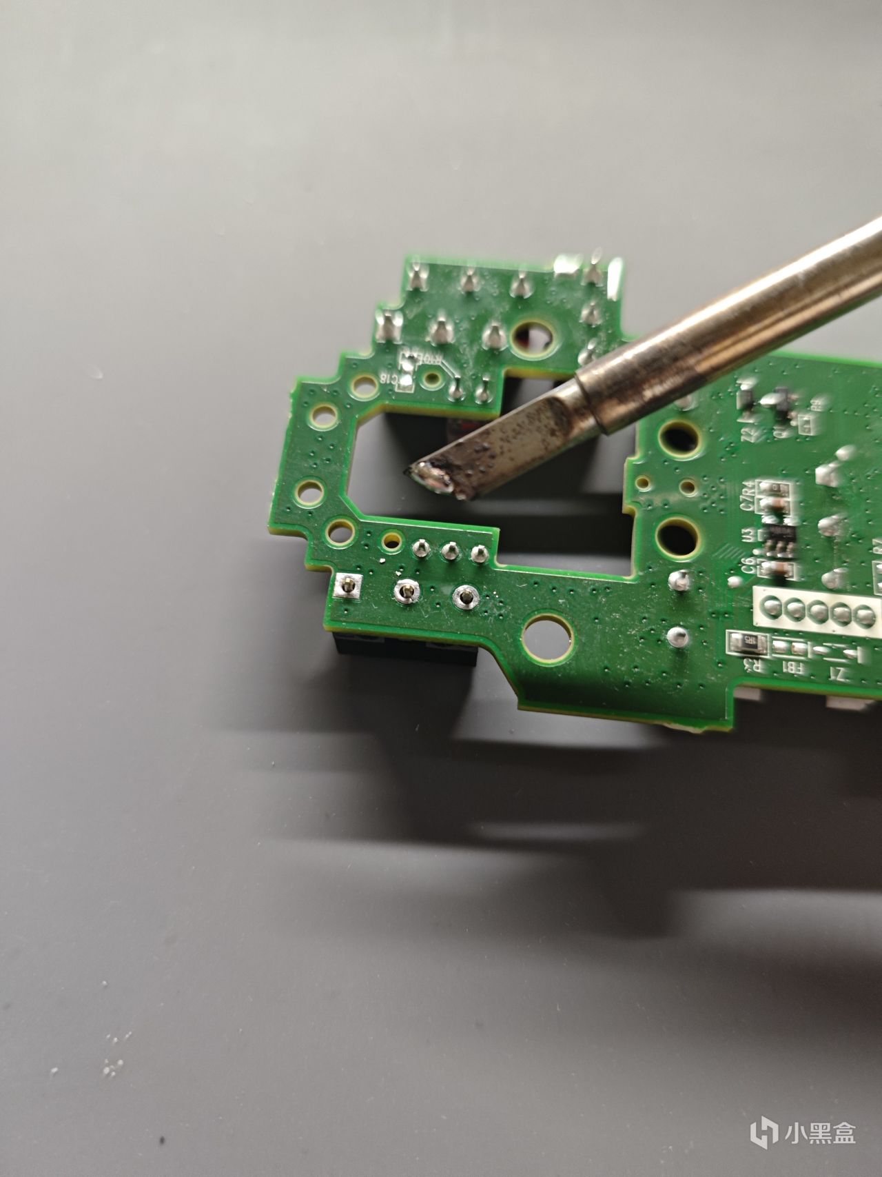 在焊点上补上一点锡,三个焊点的操作都一样。