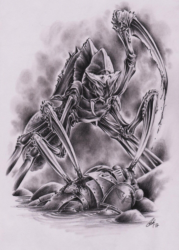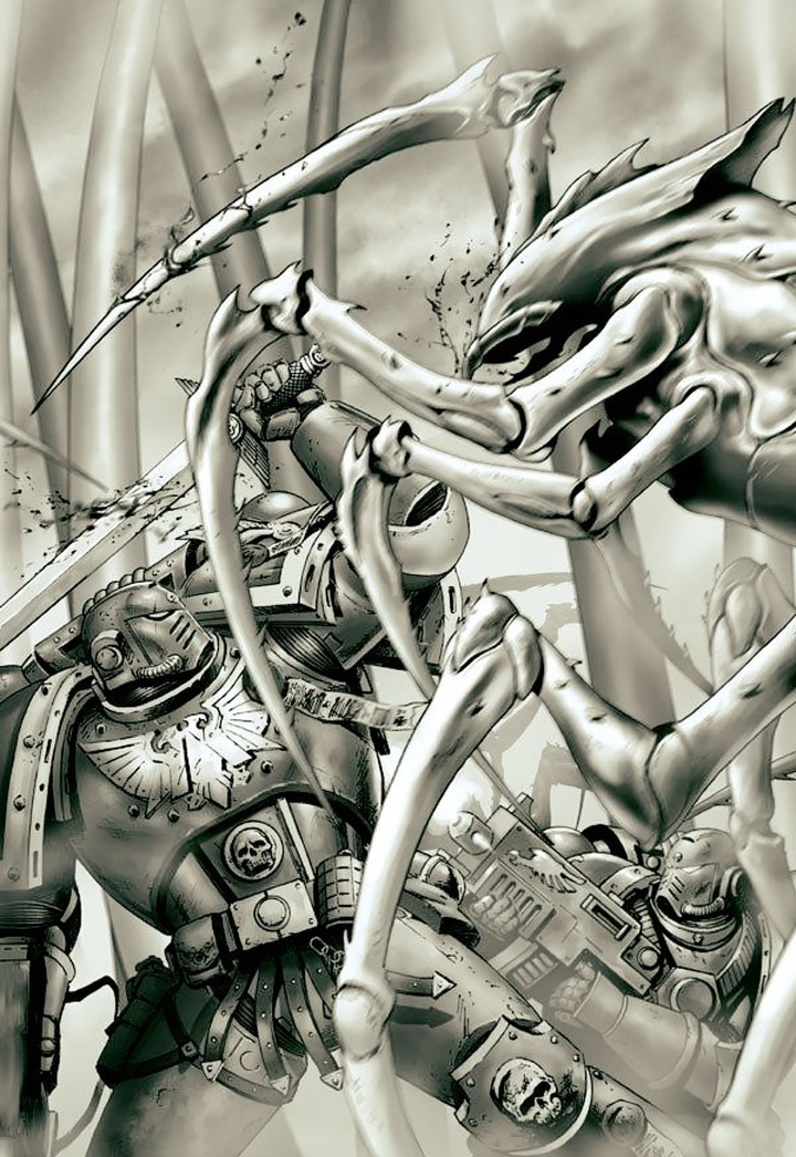 圣吉列斯将五个圣血天使连队投入帝国入侵部队,与战帅并肩对抗异形。数以千计的巨蛛纲如无尽浪潮般从森林峡谷中涌出。尽管从未在帝国攻势下撤退,巨蛛纲仍节节败退。战役进行至第六个月,巨蛛纲濒临灭绝之际,星际联邦派遣的舰队抵达星系,调查何者袭击了其巨蛛纲保留地。荷鲁斯认为与高度先进的星际联邦人类接触是更紧迫的问题,遂终止了对"谋杀星"异形的清剿。巨蛛纲被其宿敌星际联邦第二次从灭绝边缘拯救。而帝国后来的记录,未载明此野蛮物种在荷鲁斯叛乱爆发后的最终命运。