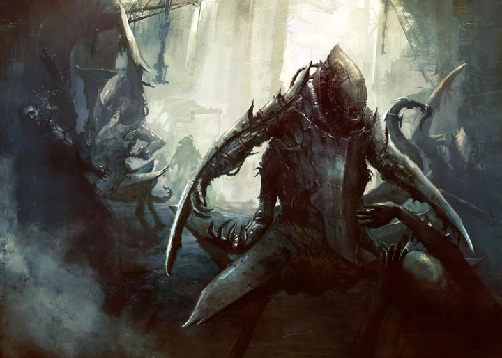 同样,这些神话中的恐怖存在被描述为堕落者,配备着邪恶的机械增强装置。传说对其成因各执一词,但都明确指出这些机械组件旨在提升其战斗能力。部分故事称这些生物憎恶自身甚于其他生命,因而会用机械部件取代肉体以疏离其原始形态。另一些则认为拉克·戈尔是由某个神级种族凭空创造的物种,机械组件仅用于补全生物工程无法完成的部分。还有传说暗示神经植入体可能与地位、纯度相关,或许是其繁殖的必要条件。然而,在帝国机构真正捕获并审讯这些异形之前,真相很可能永远成谜。