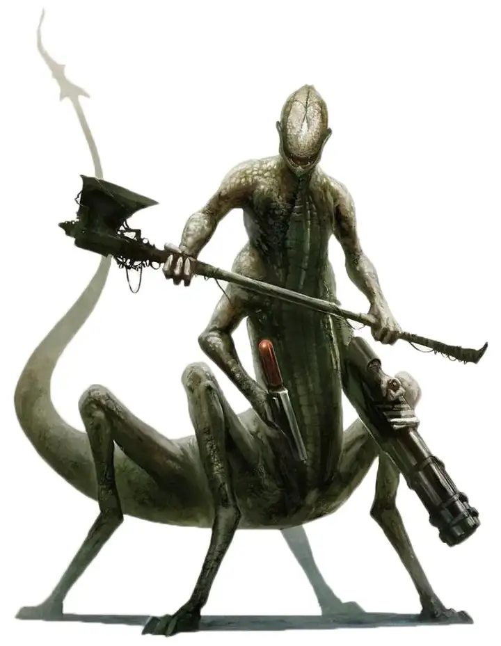 拉戈尔战士呈垩白色,身体结构似螳螂,热衷通过机械改造增强能力并替换残缺肢体。其起源地至今未知,它们对人类世界与舰船发动零星袭击的动机似乎也只是为了无差别屠杀以及掠夺矿物与武器。