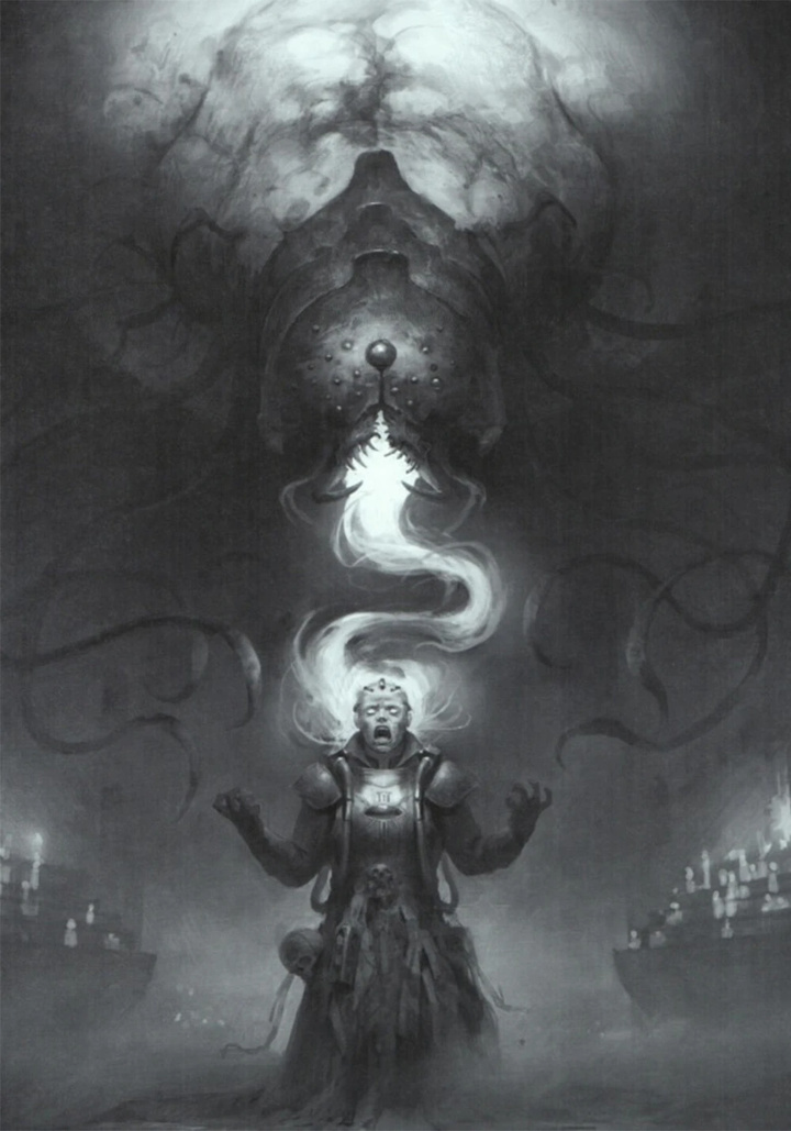 洞启心眸 – 拉克·戈尔本就以恐怖闻名,但其科技萨满展现的能力远超寻常恐惧。它们不追求以精巧技艺压制敌人,常直接释放亚空间的原始狂怒摧残对手心智,凭借野蛮的恐怖碾压一切。