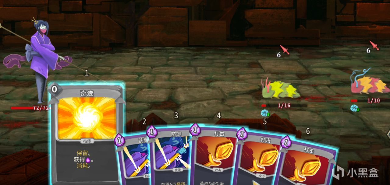 初始血量 72 点(介于静默猎手与故障机器人之间),基础卡牌自带姿态牌,第一层战力拉满,无需过渡牌也能稳扎稳打,但姿态切换逻辑、能量循环规划对新手极不友好,暴怒姿态下受双倍伤害易暴毙,核心牌缺失时后期乏力。就是新手难把控攻防节奏,神格体系成型门槛高,对卡组精简度要求严苛。