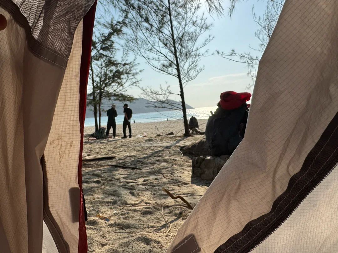晚上到了营地扎营,怕野猪闻到食物气味过来,所以带的没有味道的干巴面包啃营地沿海,风很大很大,需要用沙钉才能稳住帐篷第二天拉开帐篷就可以看到漂亮的大海