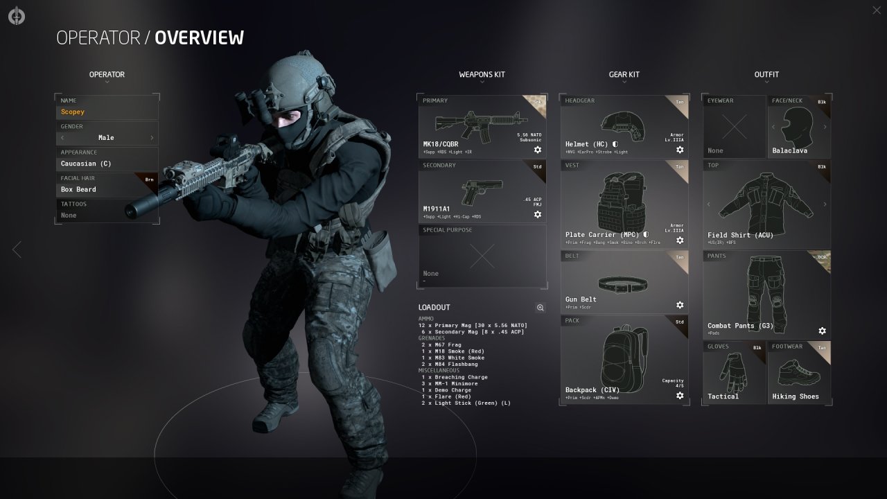 游戏内单兵携行具编辑界面
