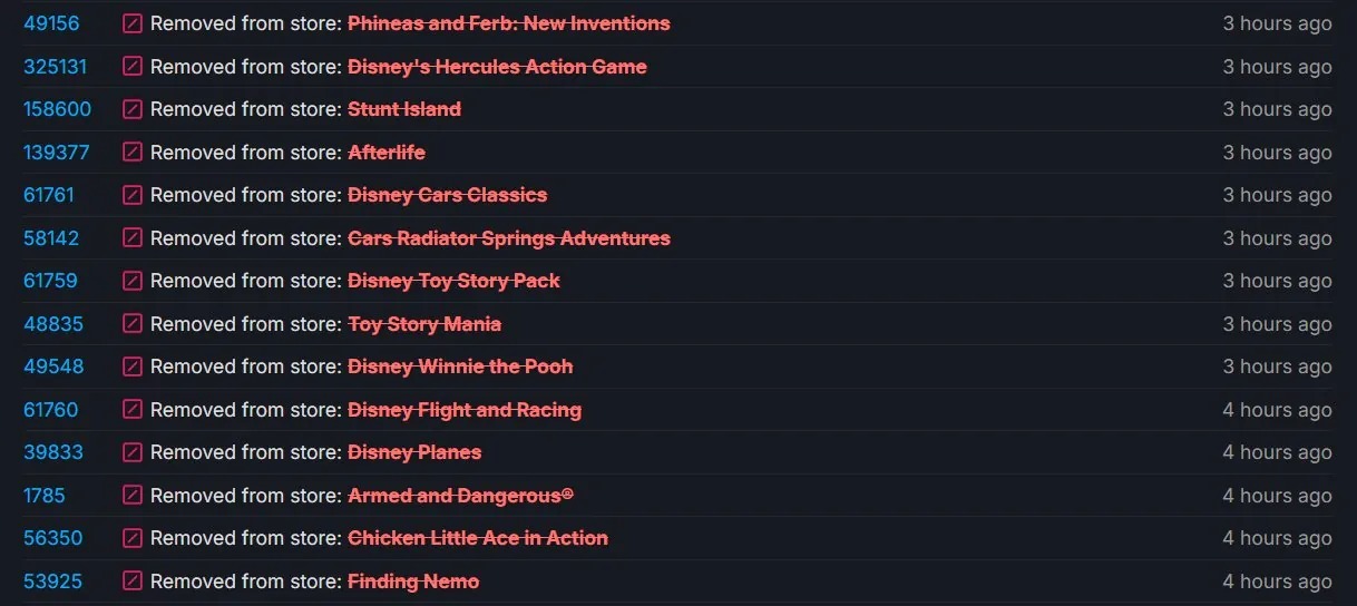 值得注意的是,其中部分遊戲此前也在GOG平臺銷售,此次與Steam版同步下架。這些作品現已無法被新PC玩家購買。已購買遊戲的現有玩家仍可繼續訪問遊戲庫,迪士尼尚未移除已購內容的訪問權限。
