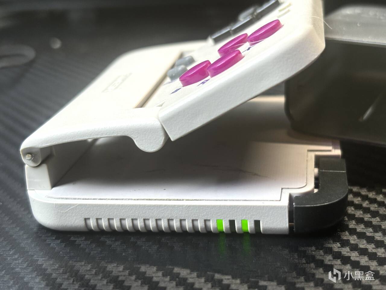 先来看看手柄的外观,说实话,真的非常小巧,属于那种可以放口袋的shizi程度,配色也是偏向于复古配色。小鸡还额外准备了收纳保护壳,能有效的避免到磕碰。