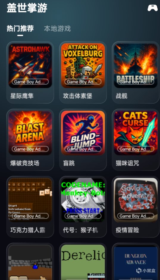 接下来,就到了哥们最期待的应用方面,小鸡自研了一款叫做盖世掌游的复古掌机模拟器APP,目前支持GAME_BOY,GBA,NES,SNES四个平台的游戏,里面在线的游戏有很多,你也可以选择手动下载一些游戏。