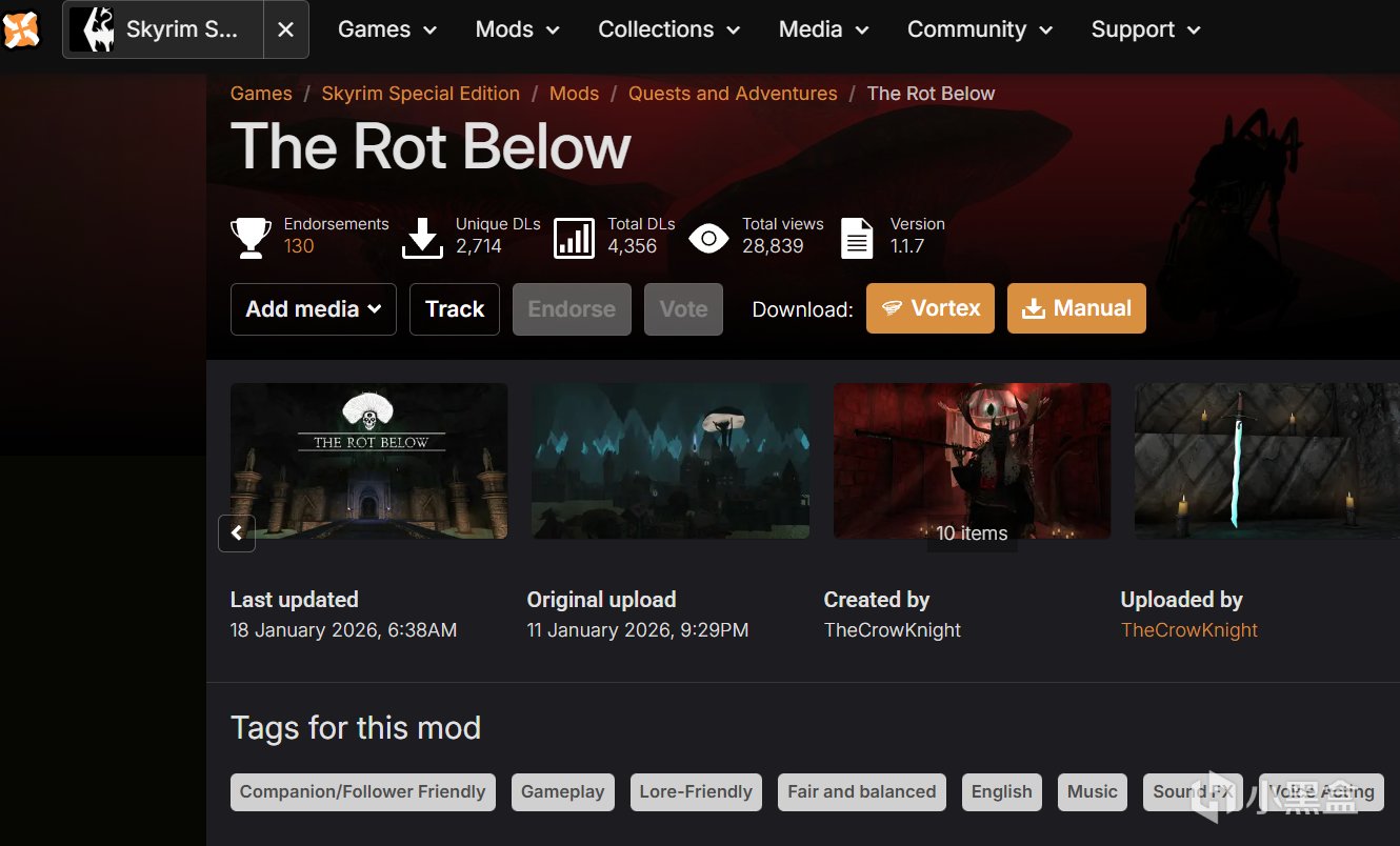 《上古卷轴5:天际》MOD《腐朽之下》(The Rot Below)制作者声称承诺给玩家提供“3-6小时的地牢体验”,并且全程语音配音,有中文汉化(需另外单独下载)。