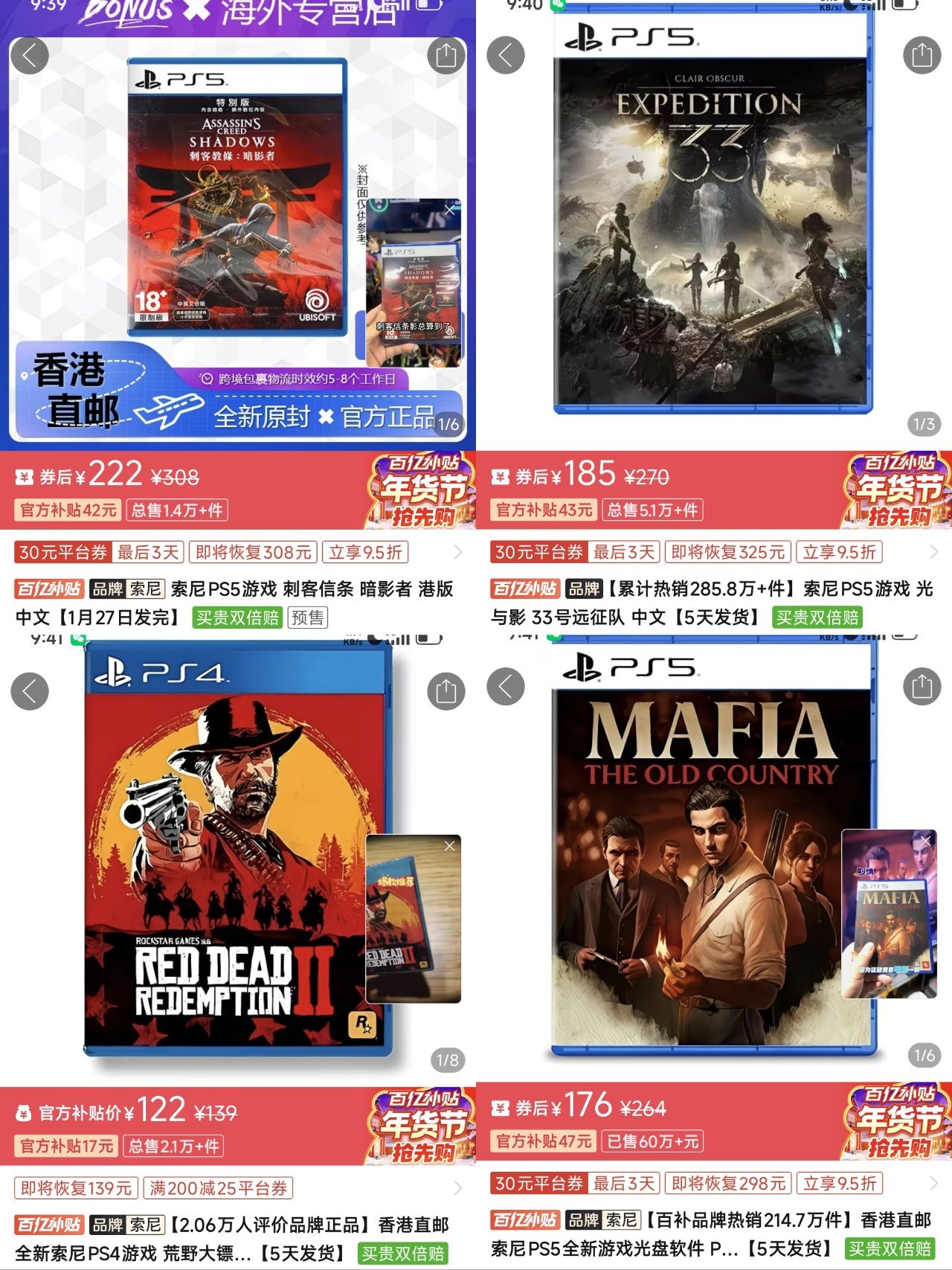 1.《刺客信条影》新史低🇭🇰222(-30)