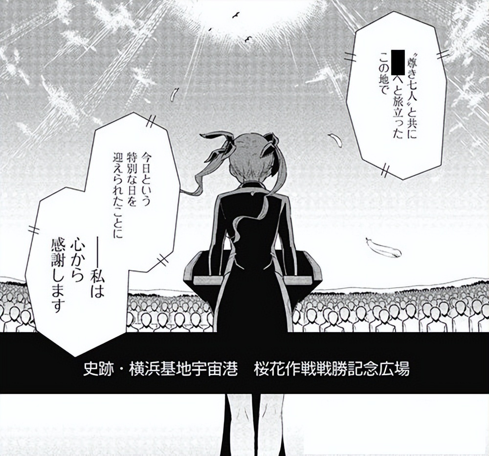 所以,吉宗钢纪才为《Muv-Luv Alternative》漫画版设计了一个不同的结尾,并亲自绘制了分镜:48年后,社霞在樱花作战战胜胜利广场上发表的那场演讲——其实到这里为止,几条世界线的阶段性事件和历史走向,都已经由吉宗钢纪整理完成。