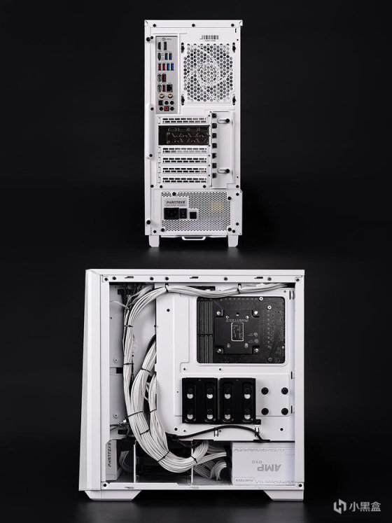 RGB OFF 装机效果展示,机箱背部左侧带有下凹设计,走线空间比较的足,搭配电源追风者自家 AMP 850 白色款,后做了定制线,走线效果!自我感觉效果走得还不错。